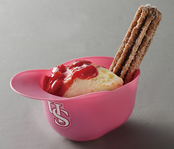 ピンクヘルメットのよくばりチュロスパフェ
