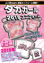 | ・タカガールユニフォーム2019 1枚 当日の観戦チケットをお持ちの女性、お一人様1着(MサイズまたはLサイズ)をお渡しします。同時に複数枚お渡しは出来ませんので、あらかじめご了承ください。 ・タカガール♡デー タブロイド紙 1部 ※ビジター応援席は対象外となります。 | |