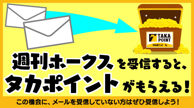 タカポイントでは、メールマガジン「週刊ホークス」限定でポイントプレゼントキャンペーンを実施中です。