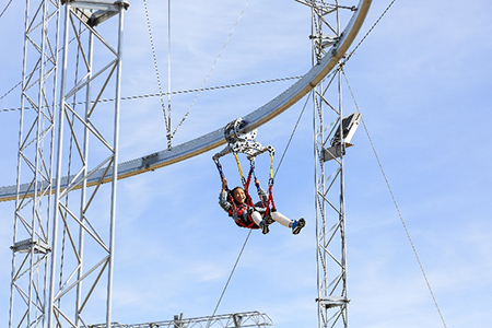 屋上エリアには一人乗りのぶら下がり式レールコースターを設置。