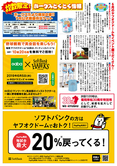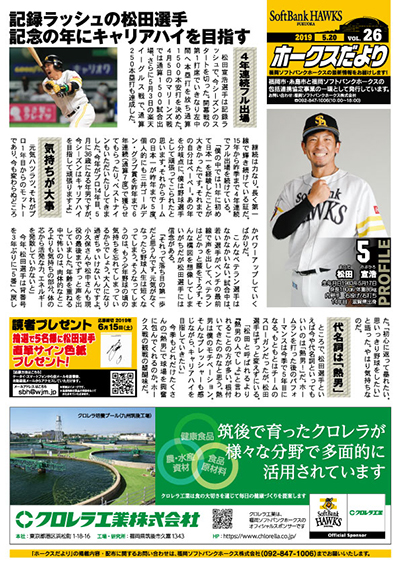福岡市・糸島市と福岡ソフトバンクホークスの包括連携協定事業の一環として、『ホークスだより』を発行しています。5月号は、今シーズン続々と記録を達成している松田選手が登場。松田選手のサイン色紙が当たるプレゼント企画やホークスだより限定の優待チケット、野球観戦と一緒に楽しめる6月のイベント情報もあります!