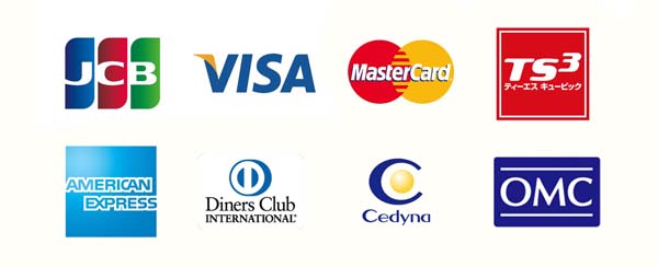 JCB・VISA・MasterCard・TS3(ティーエスキュービック)・AMERICAN EXPRESS・Diners Club・Cedyna・OMC