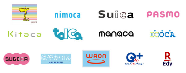 nanaco・nimoca・Suica・PASMO・Kitaca・toica・monaca・ICOCA・SUGOCA・はやかけん・WAON・QUICPay・楽天Edy