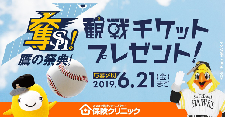 全国で約190店舗を展開する保険ショップ『保険クリニック』は、抽選で52組104名様に「鷹の祭典」指定席引換券をプレゼント!