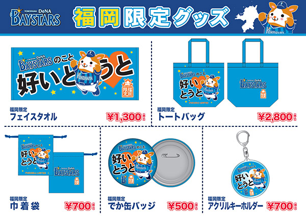 6月14日(金)~16日(日) 横浜DeNA 福岡限定グッズを5・6ゲート外グッズテントでそれぞれ販売いたします。