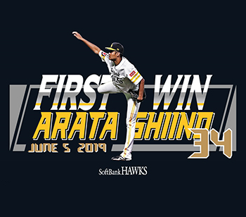 6月5日(水)中日ドラゴンズ戦で椎野 新投手がプロ初勝利を達成いたしました。これを記念して記念Tシャツと、直筆サインが入った記念グッズをHAWKS STORE ヤフオクドーム店とHAWKS公式オンラインストアにて数量限定で販売中です。