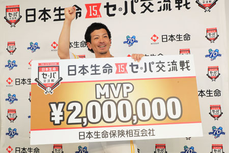 6月26日(水)、松田宣浩選手今年度の「日本生命セ・パ交流戦」の最優秀選手賞(MVP)に選出されました。初受賞になります。