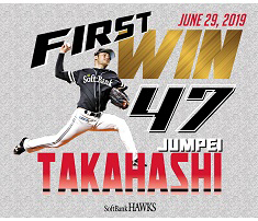 6月29日(土)北海道日本ハム戦で髙橋 純平投手がプロ入り4年目で、プロ初勝利を達成いたしました。翌30日にも2日連続勝利を獲得。これを記念して記念Tシャツと、直筆サインが入った記念グッズをHAWKS STORE ヤフオクドーム店とHAWKS公式オンラインストアにて数量限定で受注販売致します。