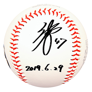 記録達成までの通算成績刻印オリジナルボールに直筆サインが入ったメモリアルサインボールです。