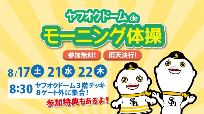 ヤフオクドームdeモーニング体操に参加された方は、ヤフオクドームツアー特別版の「モーニングミニツアー」に、お得にご参加いただけます。