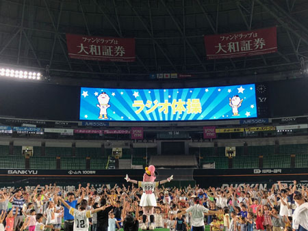 夏休み恒例!夏休みの朝にヤフオクドームのグラウンドでホークファミリーと一緒に体操しよう!