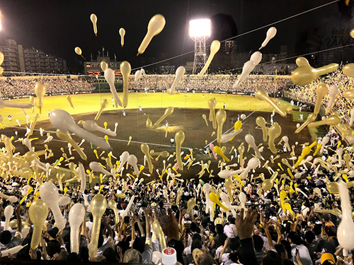 7回表終了後のホークスラッキーセブンでは、鷹の祭典2019仕様のブルーのジェット風船で、北九州市民球場をチャンピオンブルーに染めよう!