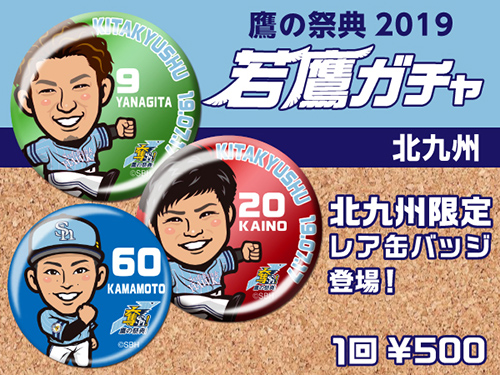人気の若鷹ガチャに北九州限定デザインが初登場!新たに大活躍中の若手選手キャラクターも加わった全35選手展開。この機会に若鷹ガチャを集めよう