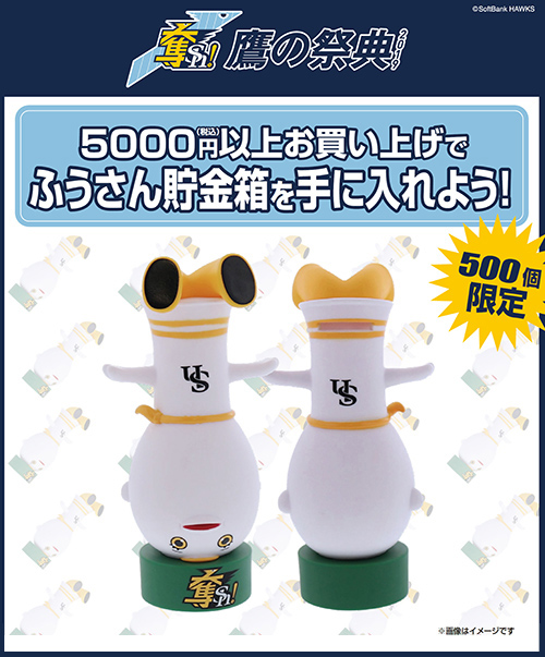 「北九州メディアドーム側グッズ特設売場」にて、1会計で5,000円(税込)以上ご購入された先着500名のお客様にふうさん貯金箱をプレゼントします!