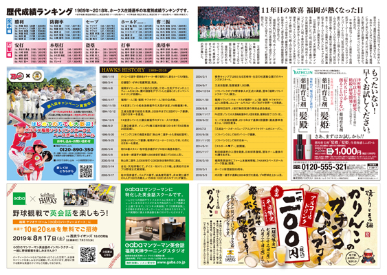 特集記事:11年目の歓喜 福岡が熱くなった日、HAWKS HISTORY、歴代成績ランキング