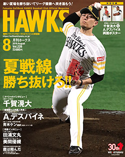 見どころ満載の8月号は、千賀投手&デスパイネ選手両面特大ポスターの付録が付いて特別定価680円(税込)で全国書店にて発売中!