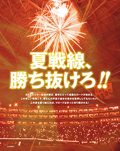今回のテーマは「過酷な夏ロードを勝ち抜く」。8月は25試合中17試合がビジターで行われます。選手にとっても過酷な時期となってくる8月は、ホームゲームだけでなく、ビジターゲームも夏休みを利用して球場へ足を運んで、ホークスにいつも以上の声援を送ろう!