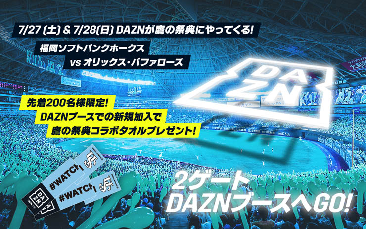 DAZNへの新規加入者先着200名様に、DAZN×ホークス 鷹の祭典限定コラボタオルをプレゼント!