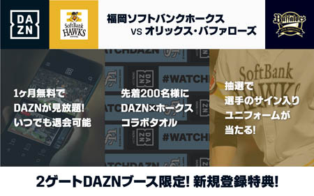 福岡ソフトバンクホークス×DAZNのコラボ企画、DAZNに新規加入して特典が盛りだくさん!!