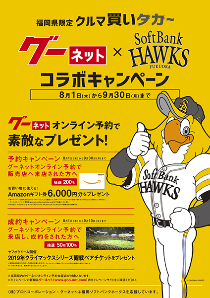 国内最大級の掲載台数40万台以上の物件情報を提供する、クルマ・ポータルサイト「グーネット」の福岡県限定キャンペーン開催!期間中、本キャンペーンに参画した福岡県内のグーネットのオンライン予約加盟店でオンライン予約を利用し来店&成約すると素敵なプレゼントが抽選で当たる!