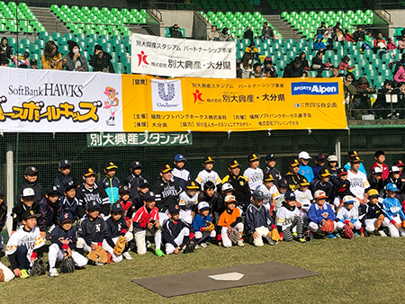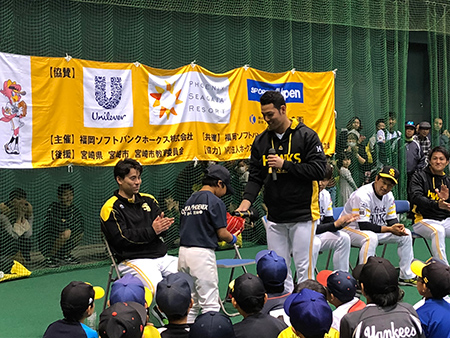ホークス選手と子どもたちがふれあい、野球や体を動かすことの楽しさを体験してもらうことにより子ども達の健全な育成に寄与し、地域スポーツ振興の一助となることを目的としています。