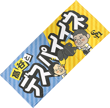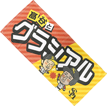 コラボパフォーマンスの帝王!?髙谷選手と松田選手、グラシアル選手、デスパイネ選手のコラボパフォーマンスの様子を、それぞれカクカクホークスでポップにデザインした、フェイスタオルが登場!