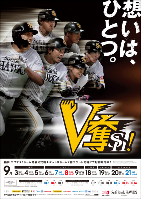 福岡ソフトバンクホークス株式会社(本社:福岡市中央区、代表取締役社長CEO:後藤 芳光)は、終盤戦スローガンを「V奪Sh!」として、チームとファンが一丸となってリーグ優勝を奪取し、3年連続日本一を目指します。