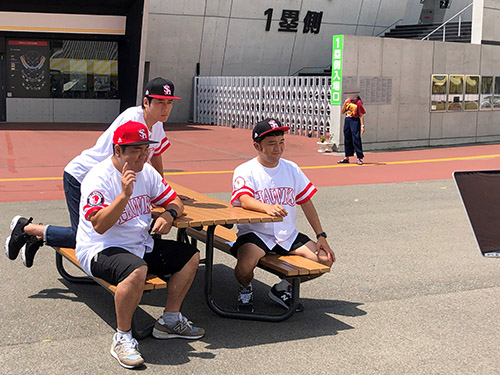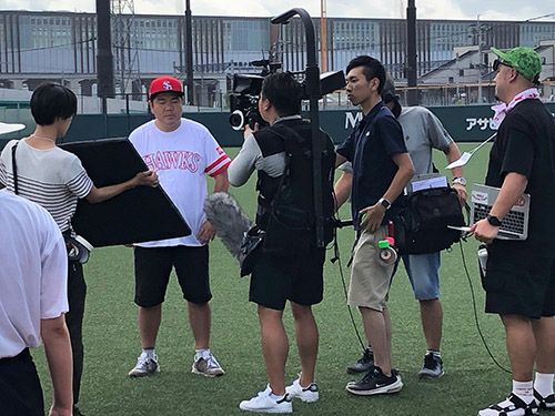 撮影当日は試合日。台風通過直後のタイミングとなり天候が心配されましたが、撮影が開始する頃には雨が上がり、だんだんと晴れ間も見えてきました!