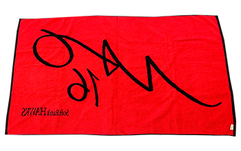 東浜巨投手が普段使いにあったらいいなと思うコンセプトで考えたグッズは、東浜巨投手が好きな赤色のシャワーサンダルと、ふわふわで汗を吸収しやすいバスタオルよりも大きなBIGタオル、女性が着ると少し大きめで選手本人の投球シーンのシルエットも入ったBIGTシャツの3アイテムが登場。男女ともに使いやすいスタイリッシュなデザインで、選手本人も使用中!数量限定での販売となりますので、お見逃しなく!