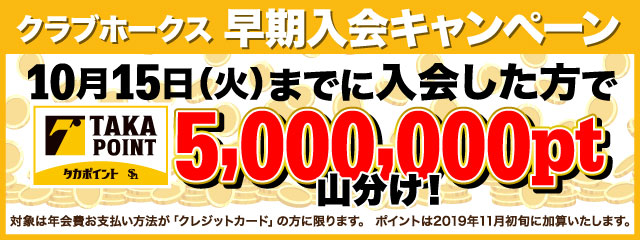 10月15日(火)までにご入会いただくと、タカポイント500万ptを山分けでプレゼント!