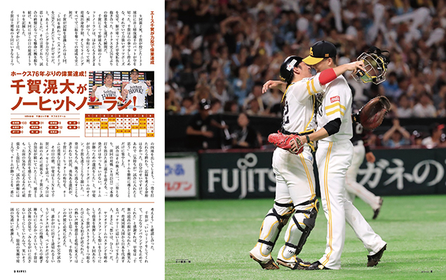 10月号のテーマは「熱戦プレイバック」。今シーズン主力の相次ぐケガに悩まされましたが、たくさんの熱い試合を見せてくれたホークス。残り試合もあとわずか。熱戦を振り返り熱い気持ちを再び胸に、さらに大きな声援を選手に送りましょう!