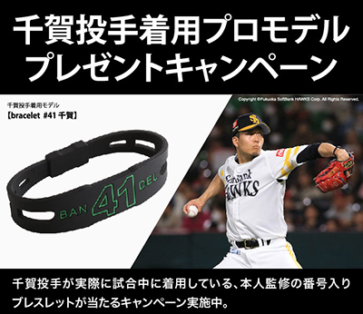 千賀投手がブランド・アンバサダーをしている「BANDEL」とホークスコラボのファッションアイテムをご購入の方を対象に、「BANDEL千賀投手着用プロモデル」ブレスを、抽選で3名様へプレゼントするキャンペーンを開催!この機会に「BANDEL千賀投手プロモデル」を手に入れよう!