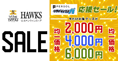 10月5日(土)から開幕するパーソル クライマックスシリーズ パを盛り上げるため、HAWKS公式オンラインストアでは、最大70%OFFになる応援セールを本日より開催!今だけ対象グッズが2,000円・4,000円・6,000円均一に♪