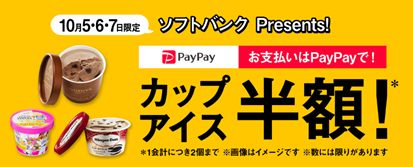 「2019 パーソル クライマックスシリーズ パ」ファーストシリーズ期間中、PayPayでのお支払いで、ヤフオクドーム内のサーティワン・ハーゲンダッツ・ゴディバにて販売するカップアイスが半額で購入できます。