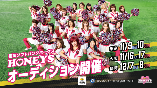 福岡ソフトバンクホークス株式会社(本社:福岡市中央区、代表取締役社長CEO:後藤芳光)は、ホークスオフィシャルダンス&パフォーマンスチーム「ハニーズ」の2020年度メンバーオーディションを開催します。
