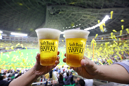 球団オリジナルビール「奪Sh!エール」をはじめ、2~4ゲートコンコース内では選手メニューなど大人気グルメも販売いたします。ビールと一緒にコンコースグルメを食べてホークスへ声援を届けましょう!!