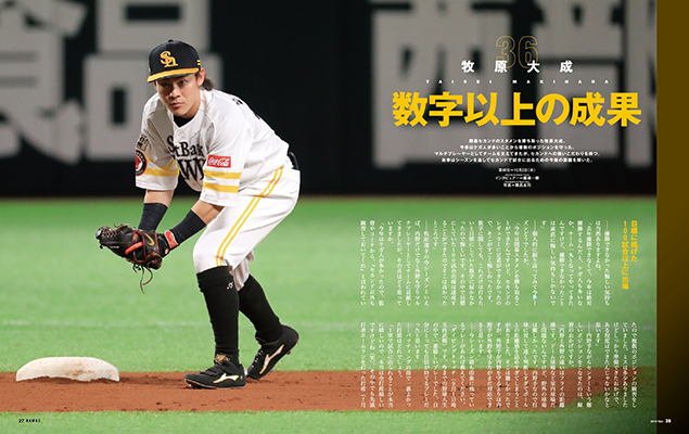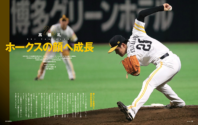 今季はたくさんの若鷹が1軍の舞台で活躍を見せてくれました。11月号ではそんな若鷹の活躍を振り返ります。まずは投手を代表して高橋礼投手にインタビューを行いました。千賀投手同様、シーズンを通して先発ローテーションで投げ、12勝を挙げるも「課題がたくさん見つかった」と語る高橋礼投手。「この先何年も活躍できる投手になるためにはもっと成長しなければいけない」と鷹のサブマリンの進化に注目です。また、打者を代表して牧原大成選手にもインタビュー。キャリアハイの114試合に出場し、内外野を守りマルチプレーヤーとして活躍した牧原選手ですが、「1年を通してセカンドを守りたい」とセカンドのポジションに対する思いを語ってくれています。