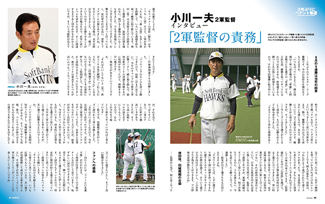9月20日(金)、ホークス2軍が3年ぶり12回目(前身時代を含む)のリーグ優勝を果たしました。今シーズンは前半戦下位に低迷した時期もありましたが、夏場から一気に勝ち星を重ね3年ぶりの栄冠を掴み取りました。2軍の今季を振り返るとともに、小川一夫2軍監督にインタビュー。優勝の感想と今季を振り返っていただきました。