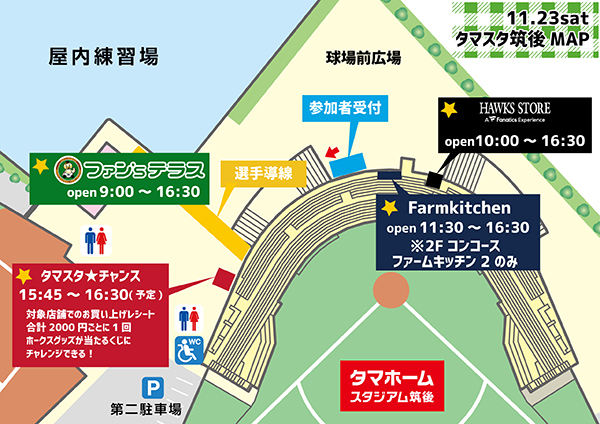 ※11月23日(土・祝)はファン‘sテラスでのホークスグッズの販売はございません。