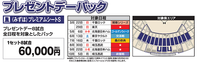 大好評の<みずほ>プレミアムシート/コカ・コーラシートで限定グッズを配布する『プレゼントデー』を、2020年度も8試合を対象に実施いたします。