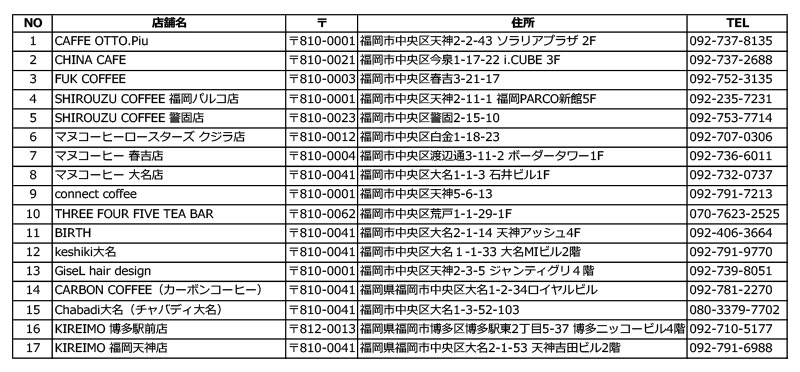 天神のカフェやサロン17店舗でもタカガールユニ投票イベント実施!