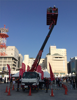 今年は約10メートルのリフター車に上ってキャンプ地見学や写真撮影を楽しめる新企画が登場!