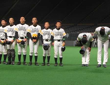 「悔しいです。だけど、小学生のうちから全国のレベルというのを知ることができたのは貴重な経験になりました。そして仲間の大切さを学びました。このチームはしっかりやる時はやる、すごく仲も良くて最高のチームでした。将来はプロ野球選手になりたいです。打てて、守れる選手に。そしてホークスにドラフト指名されたいです」