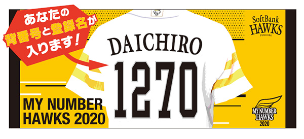 「マイ・ナンバーHAWKS」とは、福岡ソフトバンクホークス公式背番号オーナーとなり、マジェスティック製特別仕様ユニフォームにあなただけの4桁の背番号を登録できるサービスです。