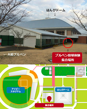 選手が実際に練習で使用するA組ブルペンで、投球体験ができます!