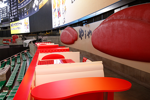 外野席の後方エリアに位置する、福岡のシンボルである「明太子」をモチーフにデザインした6人掛けのボックスシートです。観戦特典として、明太子を堪能できるオードブルを1BOXに1皿提供します。