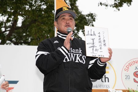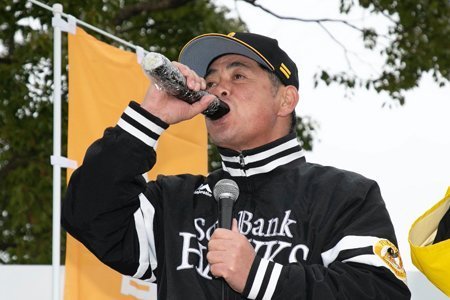 生目の杜運動公園・ホークスビレッジ内イベントステージではホークスの必勝祈願を兼ねて、宮崎県産の日本一の農畜産物を使う「恵方巻き」、「餅まき」のイベントが行われ、工藤公康監督も参加しました。