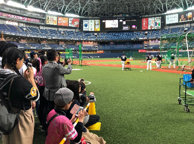 ホークス選手の試合前練習の様子を間近で見ることができます。