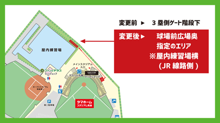 また、昨年まで設置しておりました球場内の喫煙所についても完全撤去となりますので、喫煙の際は所定のエリアをご利用ください。皆様のご理解とご協力をお願いいたします。