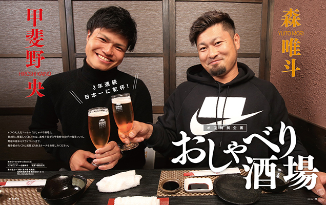 オフ特別企画第二弾として、「おしゃべり酒場」を掲載。2015年2月号以来の登場となった森唯斗投手と、昨年ルーキーながらチーム最多登板を果たした甲斐野央投手の師弟コンビが登場。相思相愛!?が随所に見られるオモシロトークは必見です!